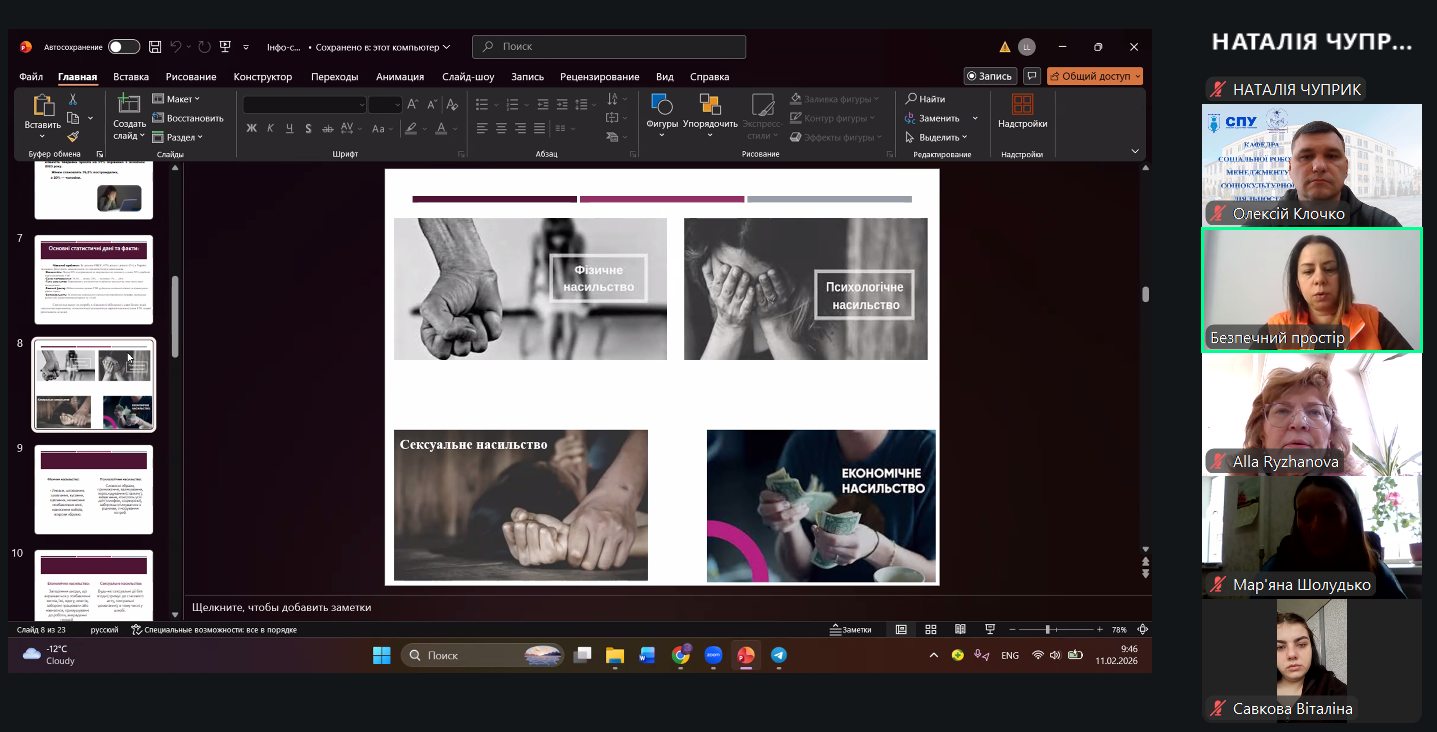 6.02.2026 р. професорсько-викладацький колектив кафедри взяв участь у І Міжнародній науковій конференції «Освіта та соціальна підтримка в умовах глобальних цивілізаційних змін: контексти, виклики та перспективи розвитку» (організатори - Університет в Седльце (Польща), Львівський національний університет імені Івана Франка (Україна) та Софійський університет Святого Климента Охридського (Болгарія)). Фокусом цьогорічного наукового зібрання стала тема «Інклюзивна освіта та соціальна трансформація».
