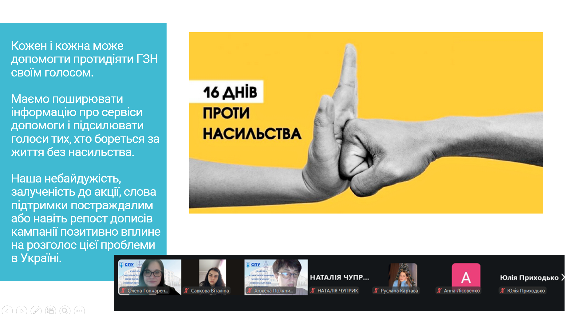 Саме тому важливо збільшити розуміння та обізнаність про всі форми насильства у суспільстві, нагадати людям про те, що насильству немає виправдання, а кожна громада, кожна область та установа – мають бути вільними від насильства у будь яких його проявах.